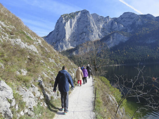 Auf dem Weg zu unserer Unterkunft im steirischen Salzkammergut machen wir einen Zwischenstopp am Langbathsee, einem Naturjuwel am Fuße des Höllengebirges, und spazieren rund um den idyllischen See. Im Narzissenbad in Bad Aussee genießen wir das herrlich warme Wasser und die heilende Sole. In Bad Ischl unternehmen wir einen ausgiebigen Stadtspaziergang durch die Kaiserstadt. Unsere kleinen Wanderungen führen uns entlang des Altausseersees, zum Toplitzsee oder rund um den Gosausee, mit Blick auf den Dachsteingletscher. Jeden Tag entdecken wir einen neuen See und genießen die bunte Herbstlandschaft.